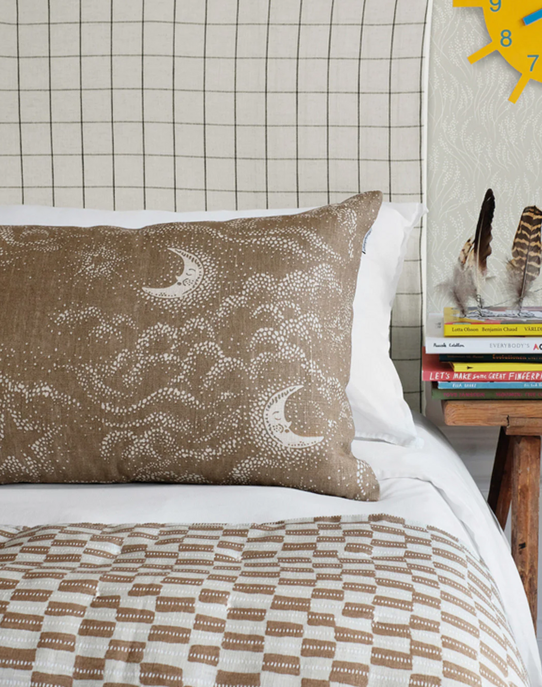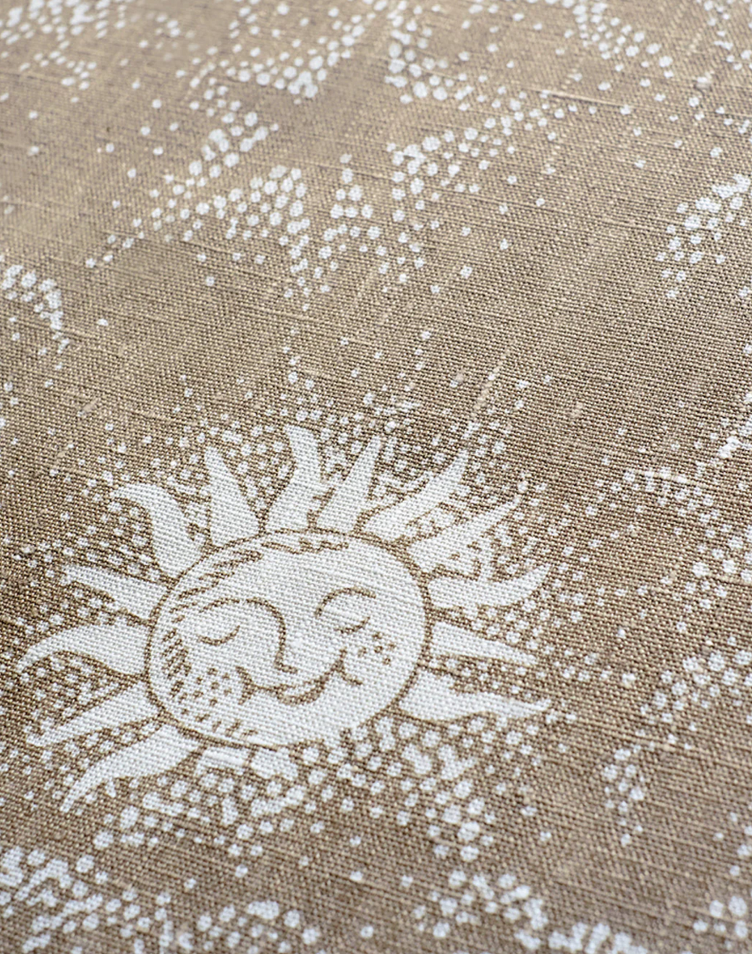Every single dot, drawn by hand creates a lovely rhythm, and together with earthy colors and a beautiful surface aging with grace, this is a print giving a room harmony. Happy Cloud is by our Master printers on our beautiful and sustainable high quality linen weave, which is lively and make our patterns age with grace.