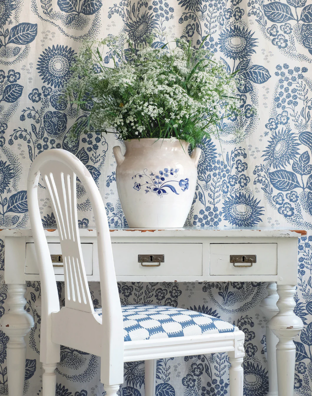 The September design is a tribute to Camilla’s favorite organic garden in her hometown Stockholm, Rosendals Trädgård. It is an oasis located on a quiet island in the middle of the city, where the harvest and floral beauty is shared with the locals. September is drawn by hand and is printed by our Master printers on our beautiful and sustainable high quality linen weave, which is lively and make our patterns age with grace.
