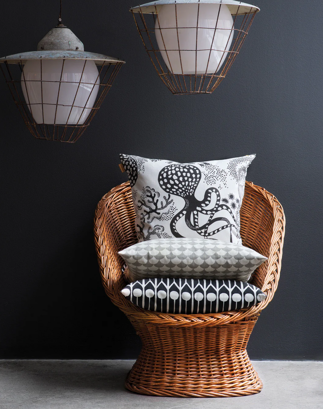 This version of a checked print was created by Camilla in her first collection, inspired by old Japanese wood carvings and the rhythm of the sea. Waves is drawn by hand and is printed by our Master printers on our beautiful and sustainable high quality cotton weave, which is lively and make our patterns age with grace.