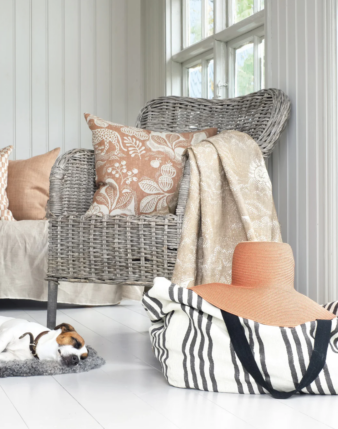 Wild at Heart is drawn by hand and printed by our Master printers on our beautiful and sustainable high quality linen weave, which is lively and make our patterns age with grace.