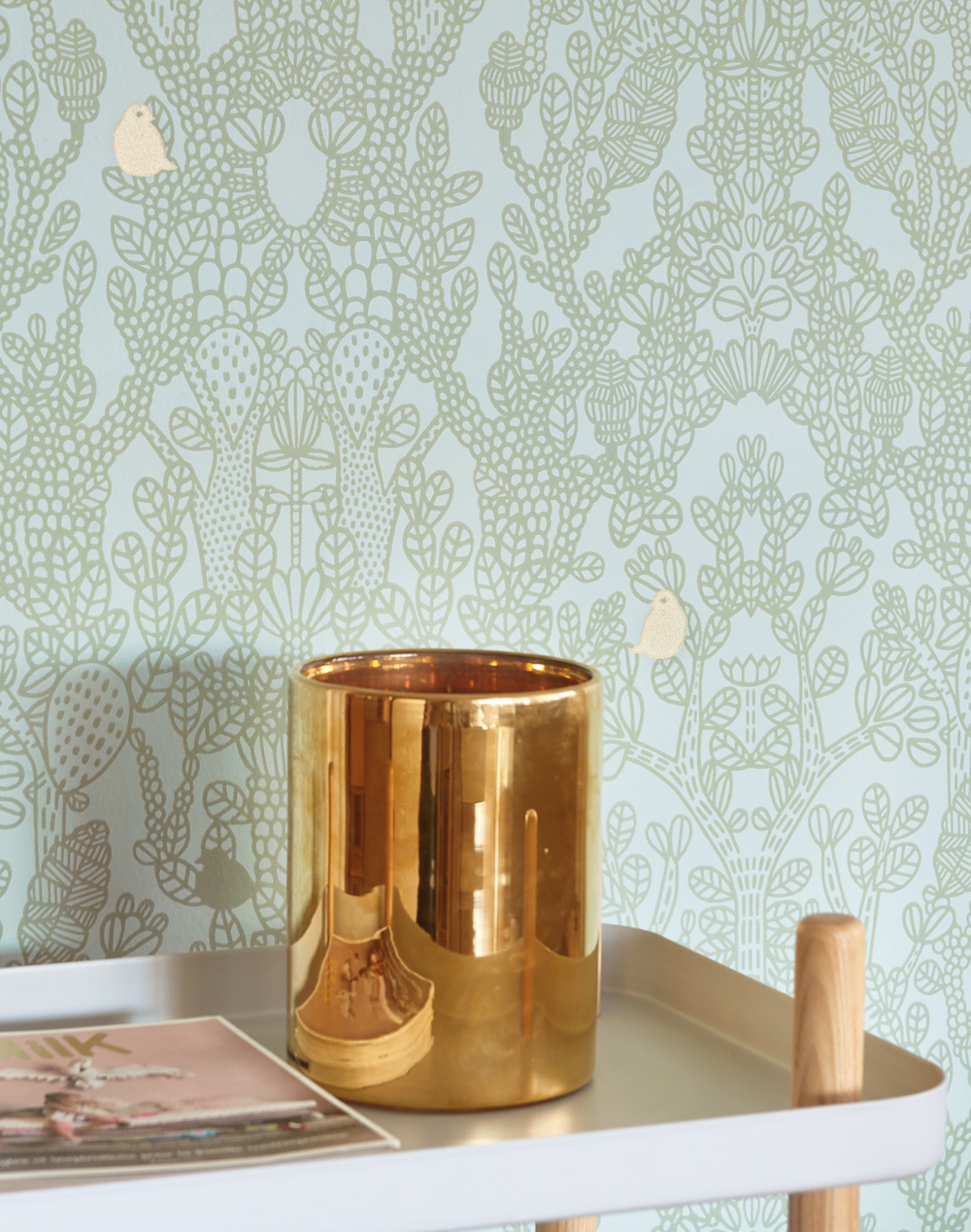 The wallpaper is made in Sweden and printed on non-woven material with colors that are water-based and completely free from solvents and PVC. Excess color is managed in an environmentally sound manner and paper waste is converted into heat. The wallpaper has a very beautiful surface where you can feel the color structure with the bare hand.