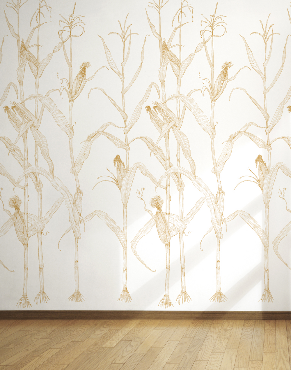 Inspired by growing up in the farmlands of the Eastern Shore of Maryland and the cyclical life of corn, Merenda designed Corn Rows. These large and beautiful corn stalks are intended to bring peace and spaciousness to your wall.