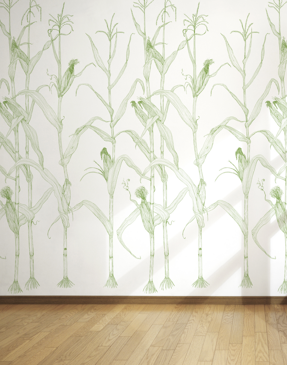 Inspired by growing up in the farmlands of the Eastern Shore of Maryland and the cyclical life of corn, Merenda designed Corn Rows. These large and beautiful corn stalks are intended to bring peace and spaciousness to your wall.