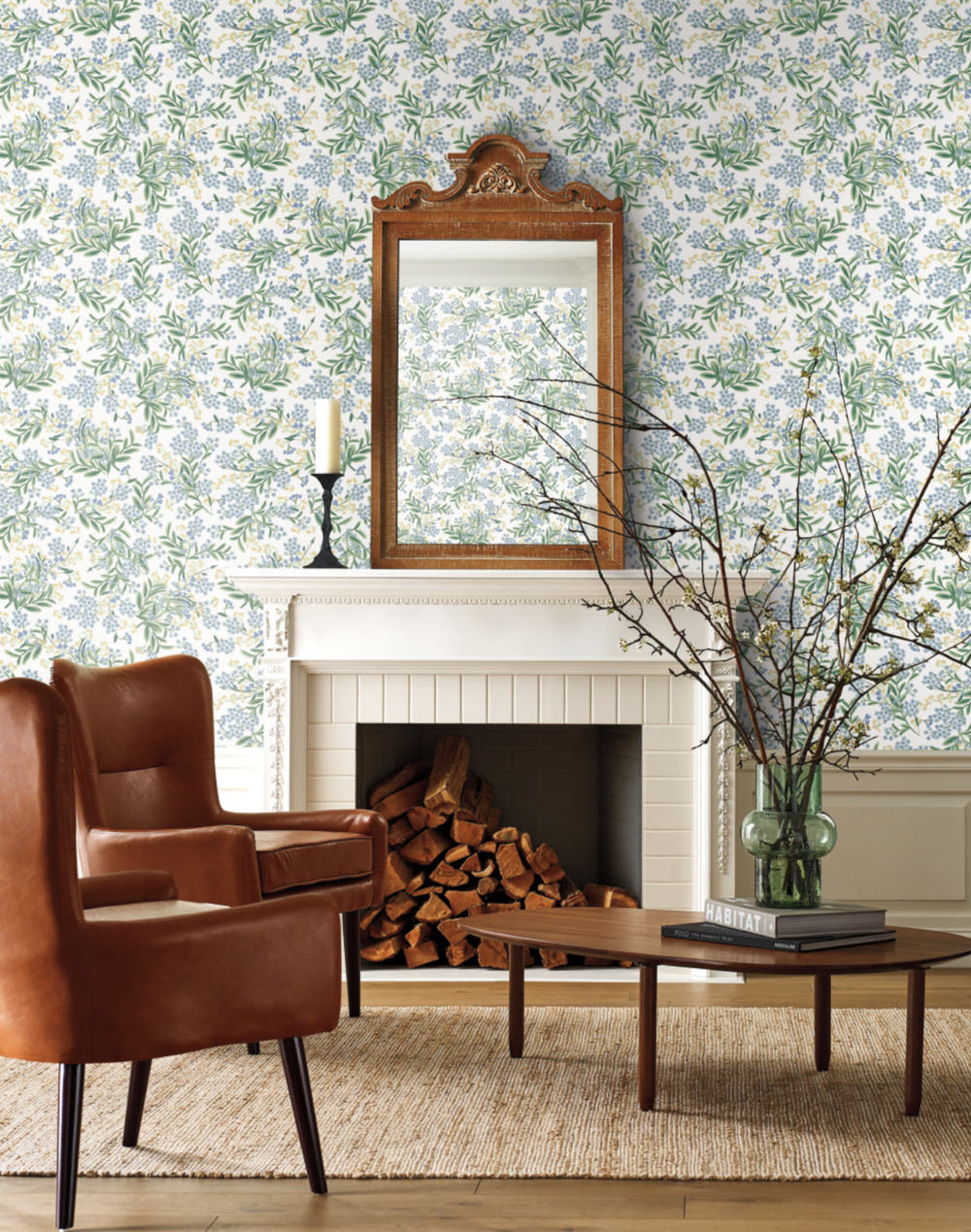 Featuring clusters of petite blooms and lush leaves, Cornflower has a delicate, romantic look. This wallpaper is screen printed and comes in 27 inch rolls with a 25.25 inch repeat.