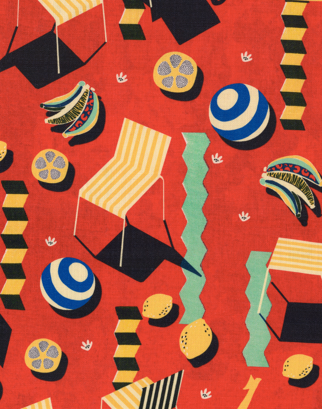 Referencing a beaming paradise through its playful elements and intricate hues, ROSSO GIALO transports any space to lazy days spent under the sun and vibrant seaside escapes. Infused with the essence of leisure and delight, its motifs adorned on a red background of pure linen, evoke memories of beachside lounging and retro chic. Embellished with colorful beach chairs, zesty lemons, and the iconic Vespa, this exuberant design captures the carefree Italian spirit of summertime. Let the lush tranquility and energetic whimsy tailor your space and unravel your playful spirit, while using it for blinds, window treatments or the upholstery of your favorite piece.