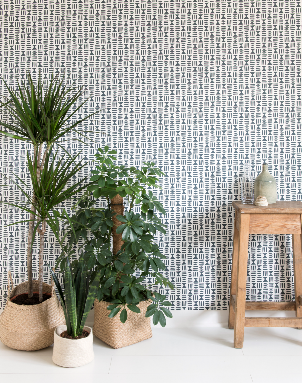Reminiscent of ancient Egyptian writing, Hieroglyph has been designed using straight horizontal and vertical lines to create a fabric like woven texture when viewed from afar. Up close each motif is carefully drawn and printed with a surface printing technique, creating a tactile feel. All MissPrint designs were originally drawn by hand and developed in their studio.