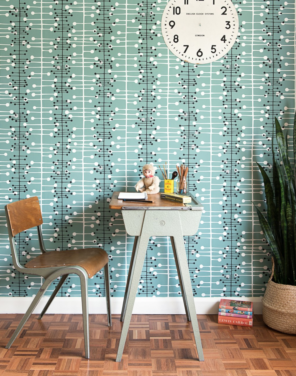 Originally inspired by mid-century science-based atomic design, abstract organic forms rise and grow from slim vertical stems. Featuring new colorways and the introduction of metallic accents for the Signature Collection, the Muscat design adds subtle texture to walls with a fresh color palette, adding new life to vintage forms.