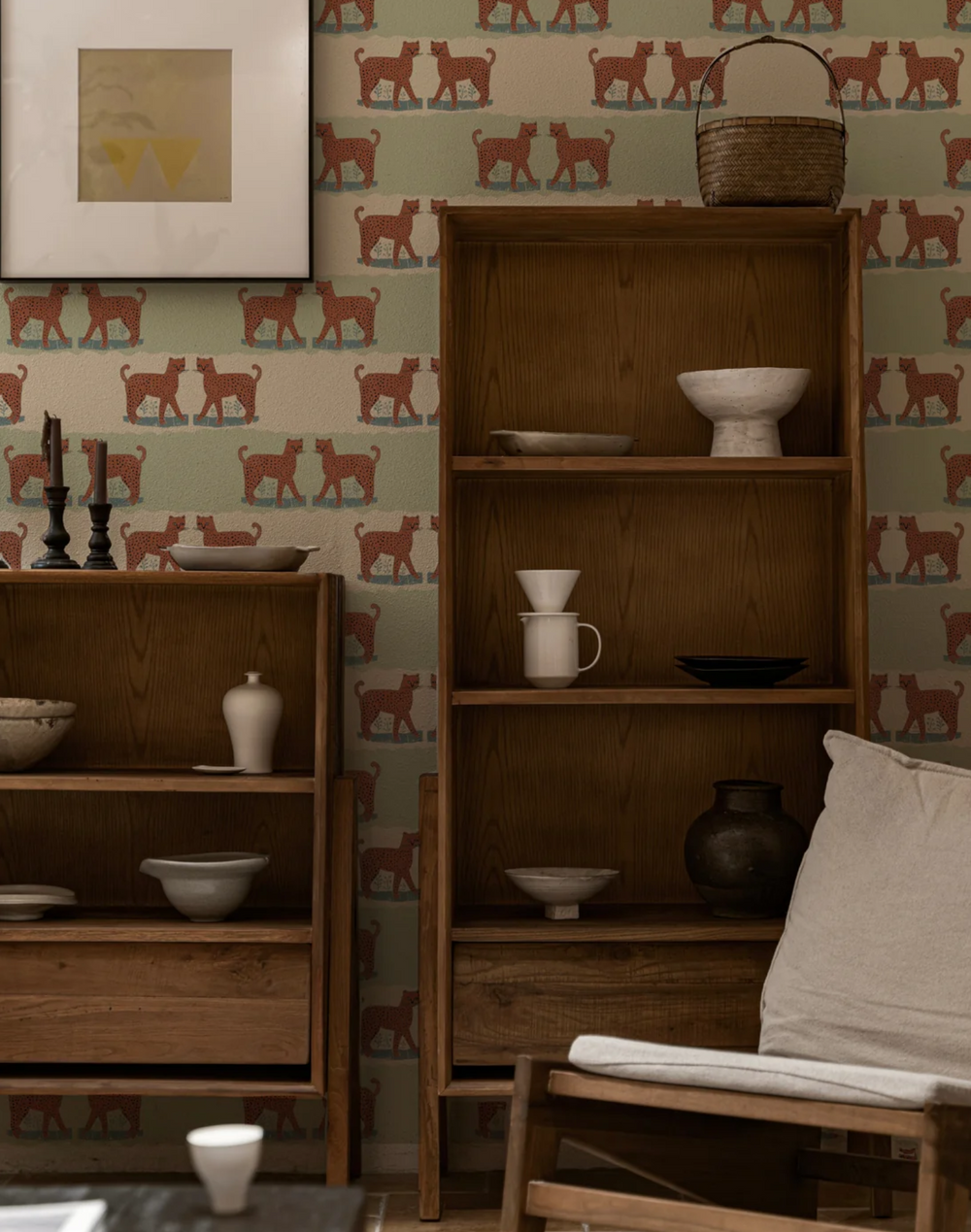 This playful wallpaper is your partner in sustainability, declaring that true style transcends fads. Inspired by the wisdom that a leopard's spots endure, it promises a bold and timeless charm, making it a delightful haven for the young and the young at heart. So, let your space dance to its own tune, as this wallpaper whispers: Be bold, be joyful, and never worry about going out of style. Available in subtle shades of green and blue, this wallpaper creates an enchanting backdrop for any space, inviting everyone to explore the wilder side of decor