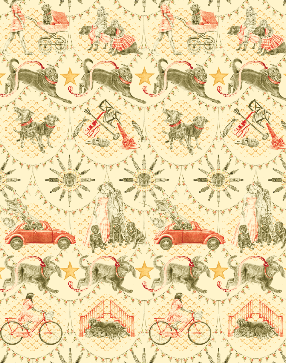 Created as a wallpaper about the life of a client with her black Labradors - 12 in total - all named after vodka bottles. This is the perfect wallpaper for the lovable Labrador (or any pup) owner!