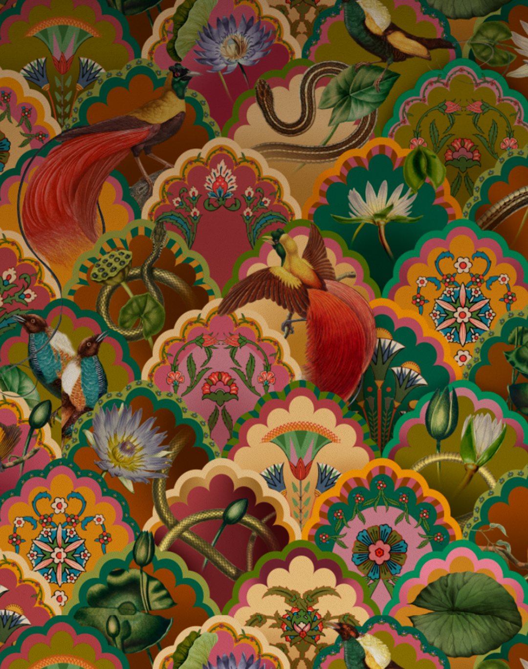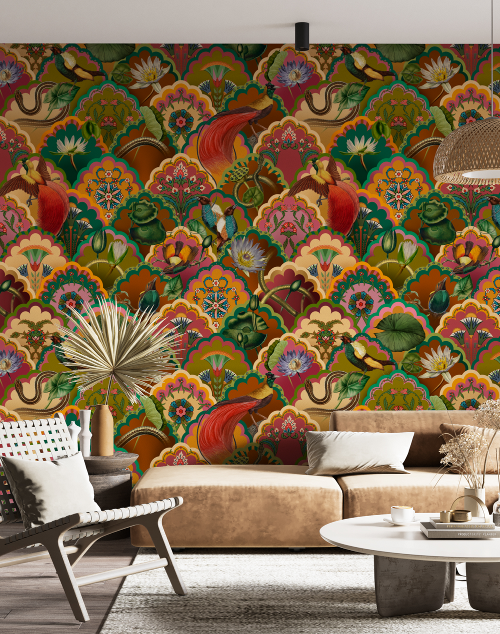 THIS IS NOT PAPER, It's fabric! Our magnificent Wall Fabrics are used to upholster any space, bring character and design statement rooms with visual interest, printed with our iconic MUZALUCI patterns each textile is customed to suit your space measures and needs. Introducing our new 2023 MUZALUCI Wall Coverings Collection. Step into an utopian world, where mythical creatures roam freely and vibrant hues dance harmoniously, creating living spaces that transcend the ordinary and become truly extraordinary. Embrace the magic within our designs and transform your home into a realm of inspiring beauty, where the boundaries of reality fade, and endless possibilities come to life.