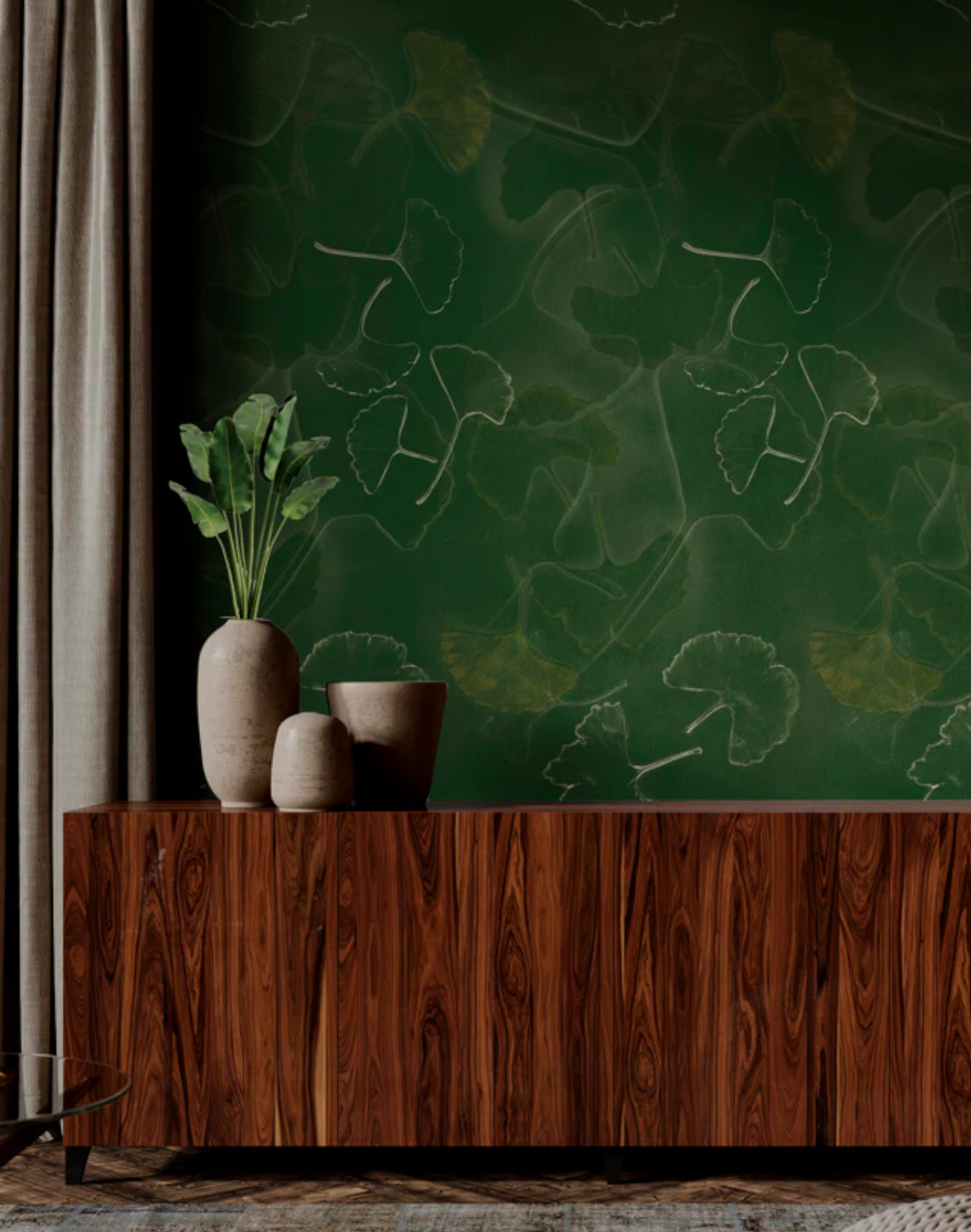 A symbol of resilience and hope, the gingko leaf is a beautiful reminder of possibility. This design engulfs you in a gentle pattern, with subtle layering that provides a sense of depth. The large scale makes a statement while maintaining its subdued quality.