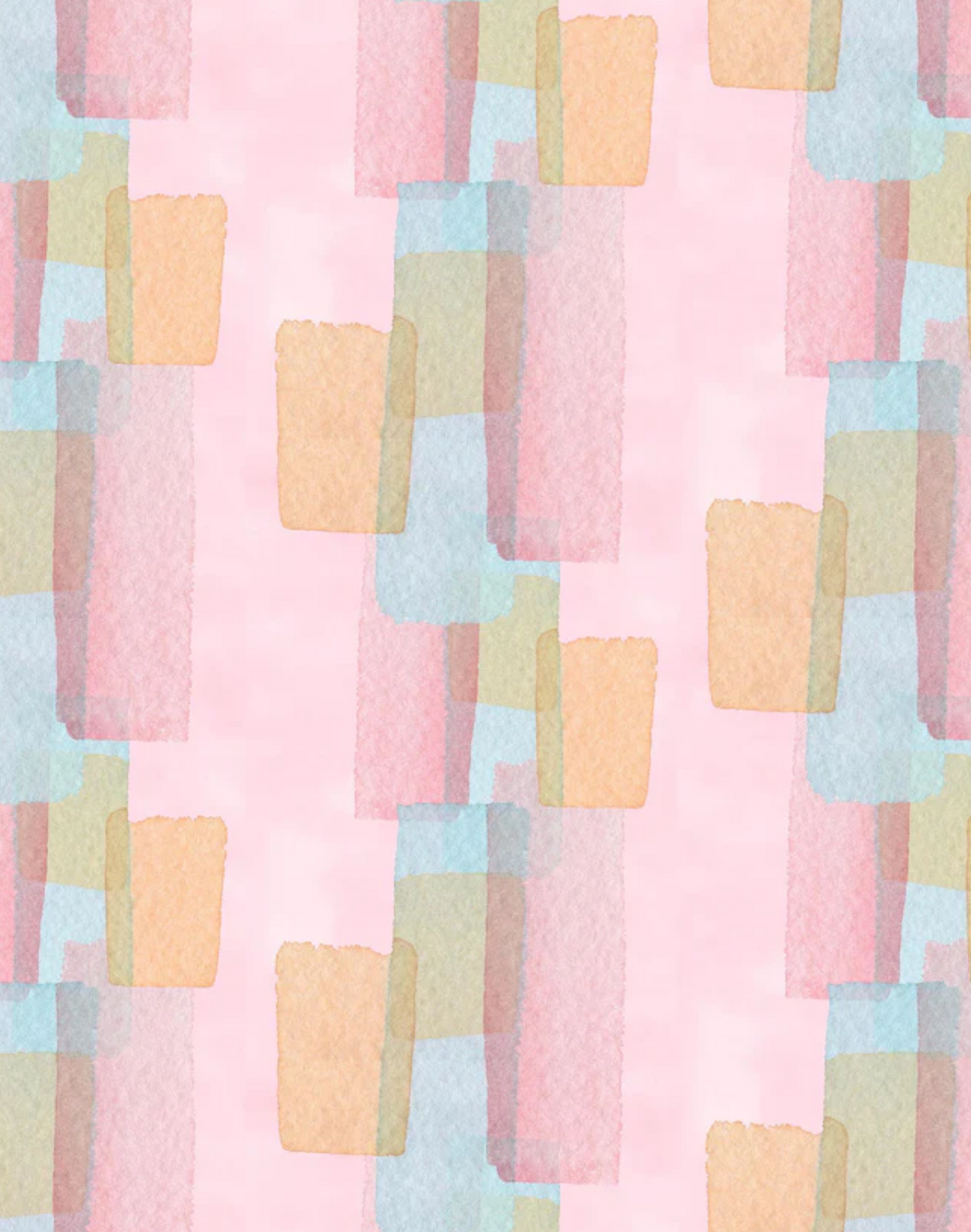 This pattern is another one of Jennifer Levy's experiments with watercolor and layering. In the Pink colorway, it happily bridges the gap between serenity and play.