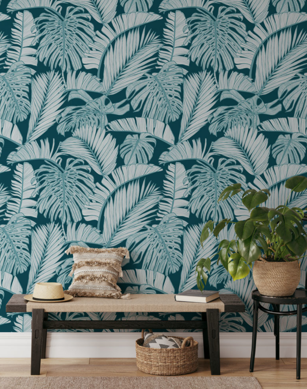 Both tranquil and sophisticated, the knitting of foliage in this design creates a tropical canopy. This exotic design will transform any space into a luscious oasis. Exotic Paradise will transform your space with a touch of jungle fever, creating a tropical-inspired oasis, this is part of the Paradise Lines Collection. Exotic Paradise design from Patricia Braune’s Paradise Lines Collection.