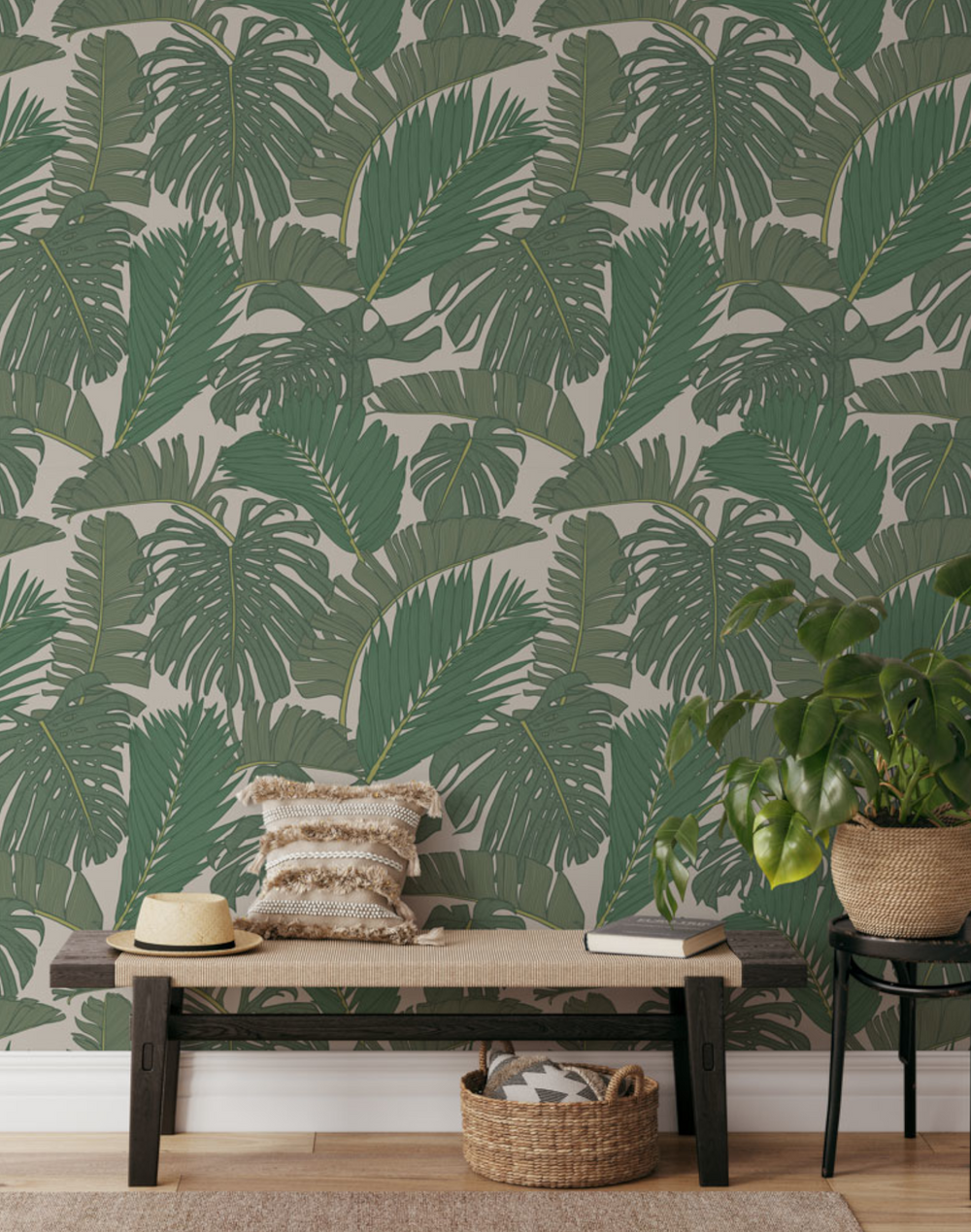 Both tranquil and sophisticated, the knitting of foliage in this design creates a tropical canopy. This exotic design will transform any space into a luscious oasis. Exotic Paradise will transform your space with a touch of jungle fever, creating a tropical-inspired oasis, this is part of the Paradise Lines Collection. Exotic Paradise design from Patricia Braune’s Paradise Lines Collection.