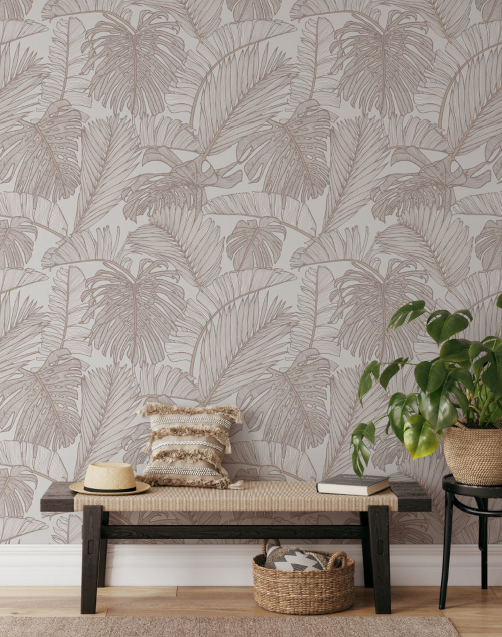 Both tranquil and sophisticated, the knitting of foliage in this design creates a tropical canopy. This exotic design will transform any space into a luscious oasis. Exotic Paradise will transform your space with a touch of jungle fever, creating a tropical-inspired oasis, this is part of the Paradise Lines Collection. Exotic Paradise design from Patricia Braune’s Paradise Lines Collection.
