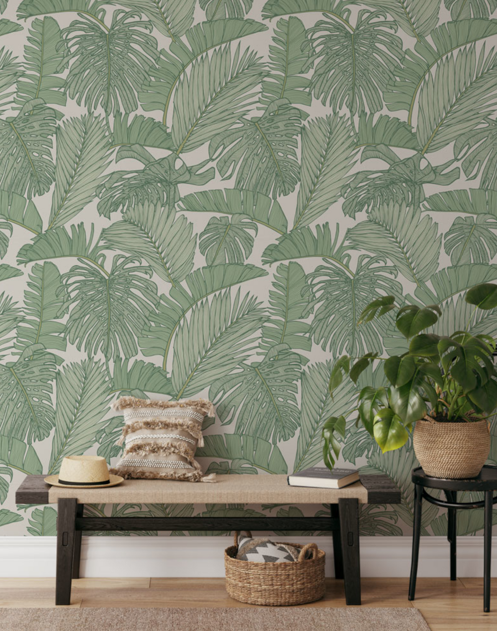 Both tranquil and sophisticated, the knitting of foliage in this design creates a tropical canopy. This exotic design will transform any space into a luscious oasis. Exotic Paradise will transform your space with a touch of jungle fever, creating a tropical-inspired oasis, this is part of the Paradise Lines Collection. Exotic Paradise design from Patricia Braune’s Paradise Lines Collection.