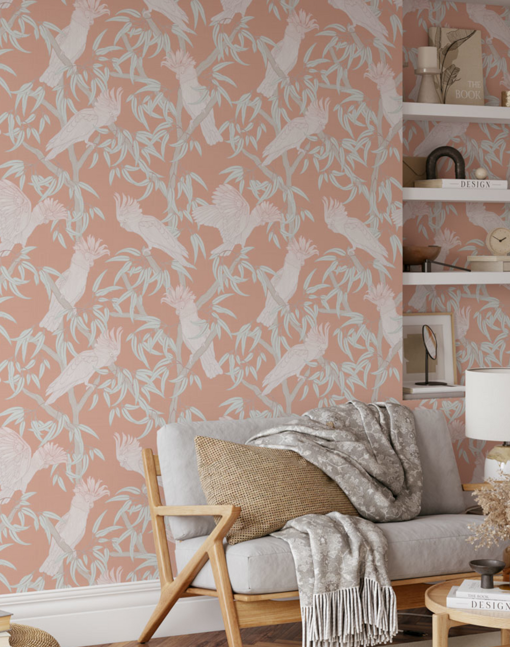 Named in honor of Major Sir Thomas Mitchell, who wrote, “Few birds more enliven the monotonous hues of the Australian forest than this beautiful species whose pink-colored wings and flowing crest might have embellished the air of a more voluptuous region.” The ‘In the Trees’ design captures a moment of ‘quiet’ in the trees filled with a Major Mitchell clan. In the Trees design from Patricia Braune’s Australian Lines Collection.