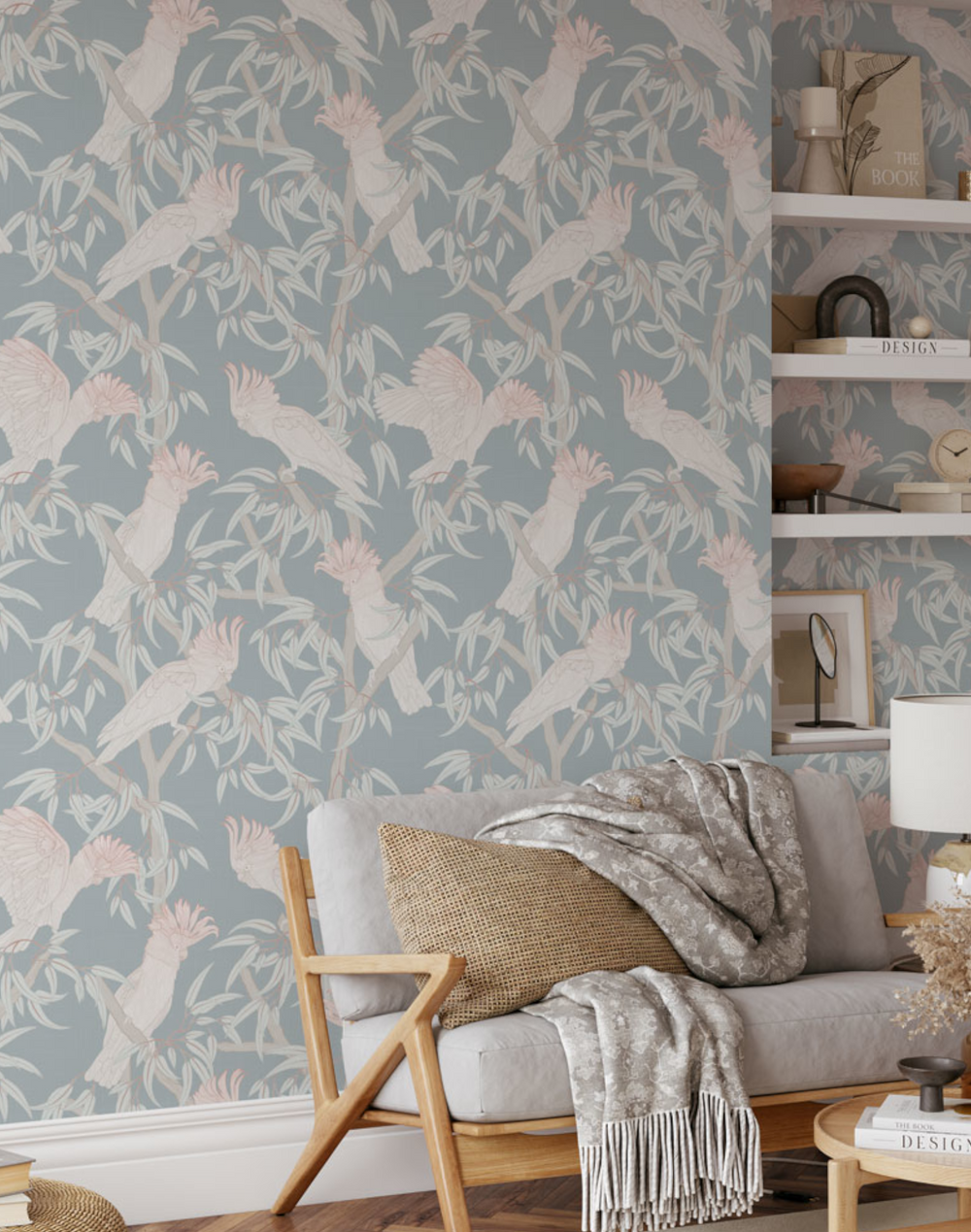 Named in honor of Major Sir Thomas Mitchell, who wrote, “Few birds more enliven the monotonous hues of the Australian forest than this beautiful species whose pink-colored wings and flowing crest might have embellished the air of a more voluptuous region.” The ‘In the Trees’ design captures a moment of ‘quiet’ in the trees filled with a Major Mitchell clan. In the Trees design from Patricia Braune’s Australian Lines Collection.