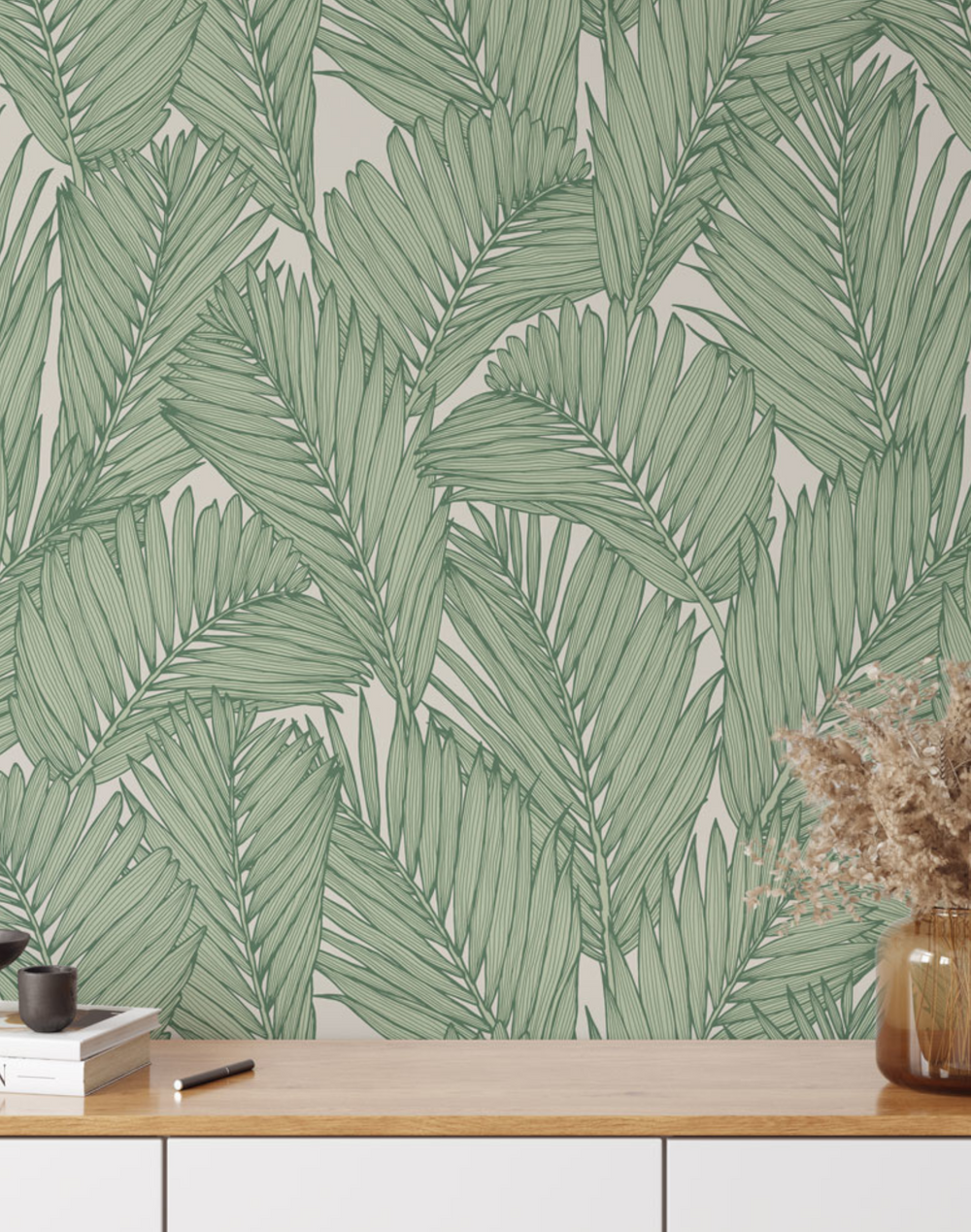 Woven illustrated fronds creates a classic and luxurious quality to this intricate design. Bringing together a tropical feel with an elegant touch. Island Frond design from Patricia Braune’s Paradise Lines Collection.