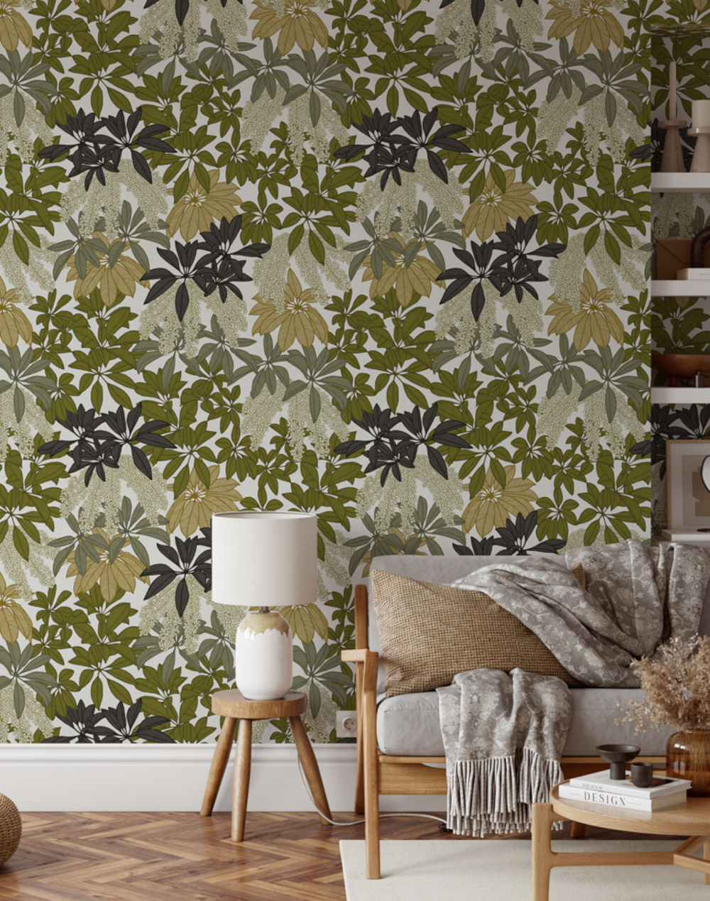 The glossy palmately leaves that radiate from a central stem of the ‘Umbrella Plant’ inspired the Parasol Leaves design. These leaves gently fan out into a rounded crown and the fruit has brilliantly displayed berries clustered together. I loved the canopy that this tree creates, and the shade it provides from the Australian Summer sun, and this is what I intended to achieve with this leafy design.