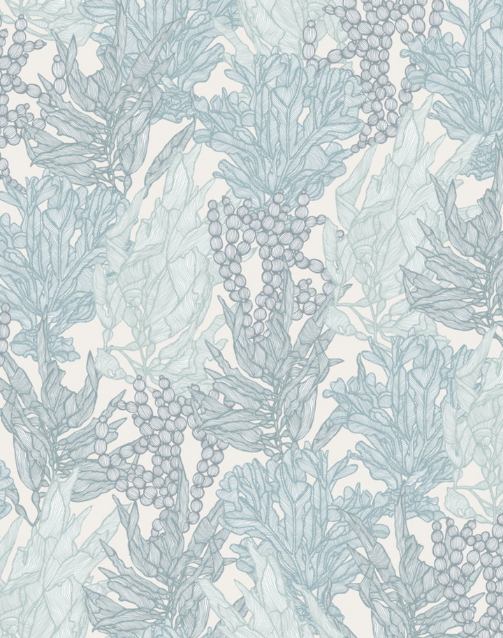 Captivated by the beauty of the seaweed, algae and kelp washing up on the beach, and the variety of shapes they created with their leaf-like and bead-like strands, Patricia Braune aspired to capture this variety and diversity in my illustrations for my Sea Garden design. Sea Garden design from Patricia Braune’s Coastal Lines Collection.