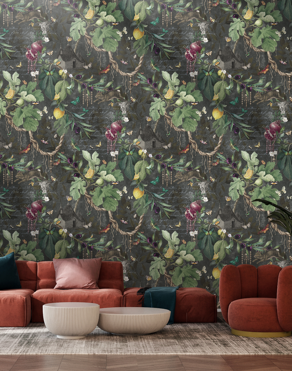 An homage to family ancestry; This exquisite design encapsulates the essence of nature's splendor, inspired by the enchanting gardens of Puglia. Transport yourself to a Mediterranean paradise as fresh balmy olive branches intertwine with ancient sprawling vines and the almost tangible scent of golden lemons and bejeweled pomegranates. Watch as a delicate parade of butterflies dance among iconic elements of the region, creating a captivating tapestry of tradition and culture.