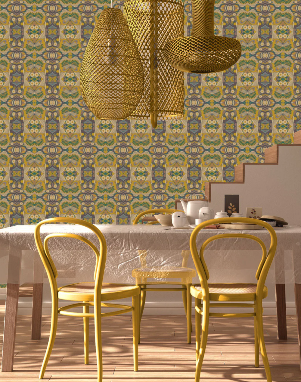 Reminiscent of the strongly rhythmic patterns associated with the Art Deco movement, the hand-drawn Espirit Boho has a few surprises in store. Take a moment to study the intricate design, and you might spot a few folkloric-style birds and flowers.