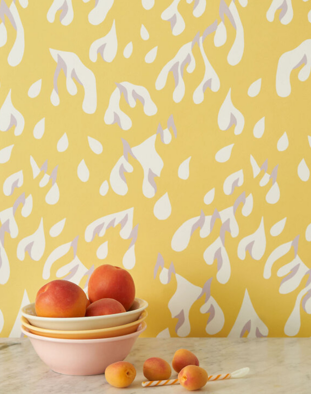 This trickling and tumbling Flame wallpaper is designed by Ellen Martin and is inspired by the intricate carved statues found in the temples of beautiful Kyoto.
