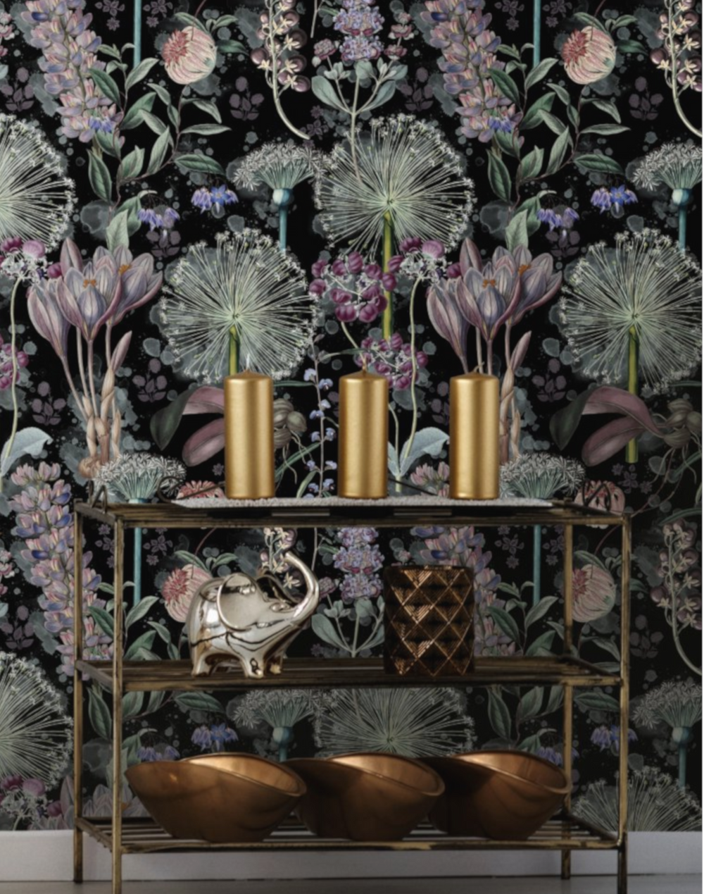 The GARDEN OF EDEN premium wallpaper displays a fabulous design, depicting paradisiac flowers and plants, on a black background. The soft floral pattern will create a heavenly interior, bringing peace, harmony and luxury vibes to any room of your house. Use it to create a space of abundance and tranquility, colored with beautiful shades of blooms, that will grant you a blissful, heavenly atmosphere.