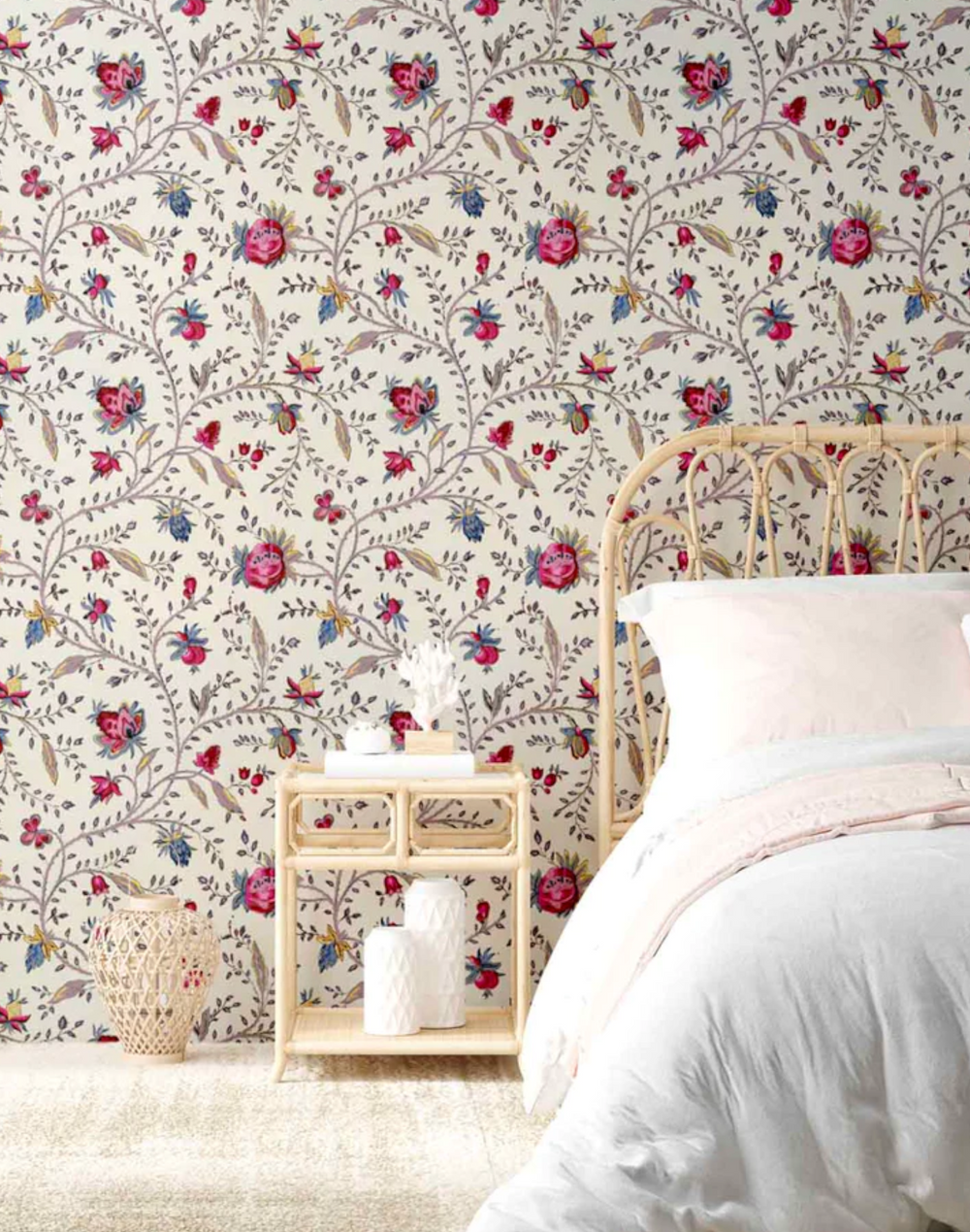 Based on an antique papier peint from the 1700’s, Indienne Grande has that bohemian allure and vintage vibe to it that creates for an eclectic and cozy haute bohemian interior environment. A floral wallpaper that is intense in a comforting and artisanal way - making it a beautiful wallpaper design to use both in larger and smaller spaces.