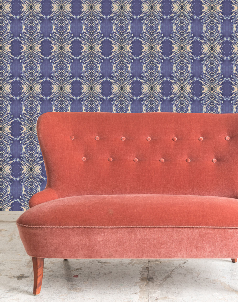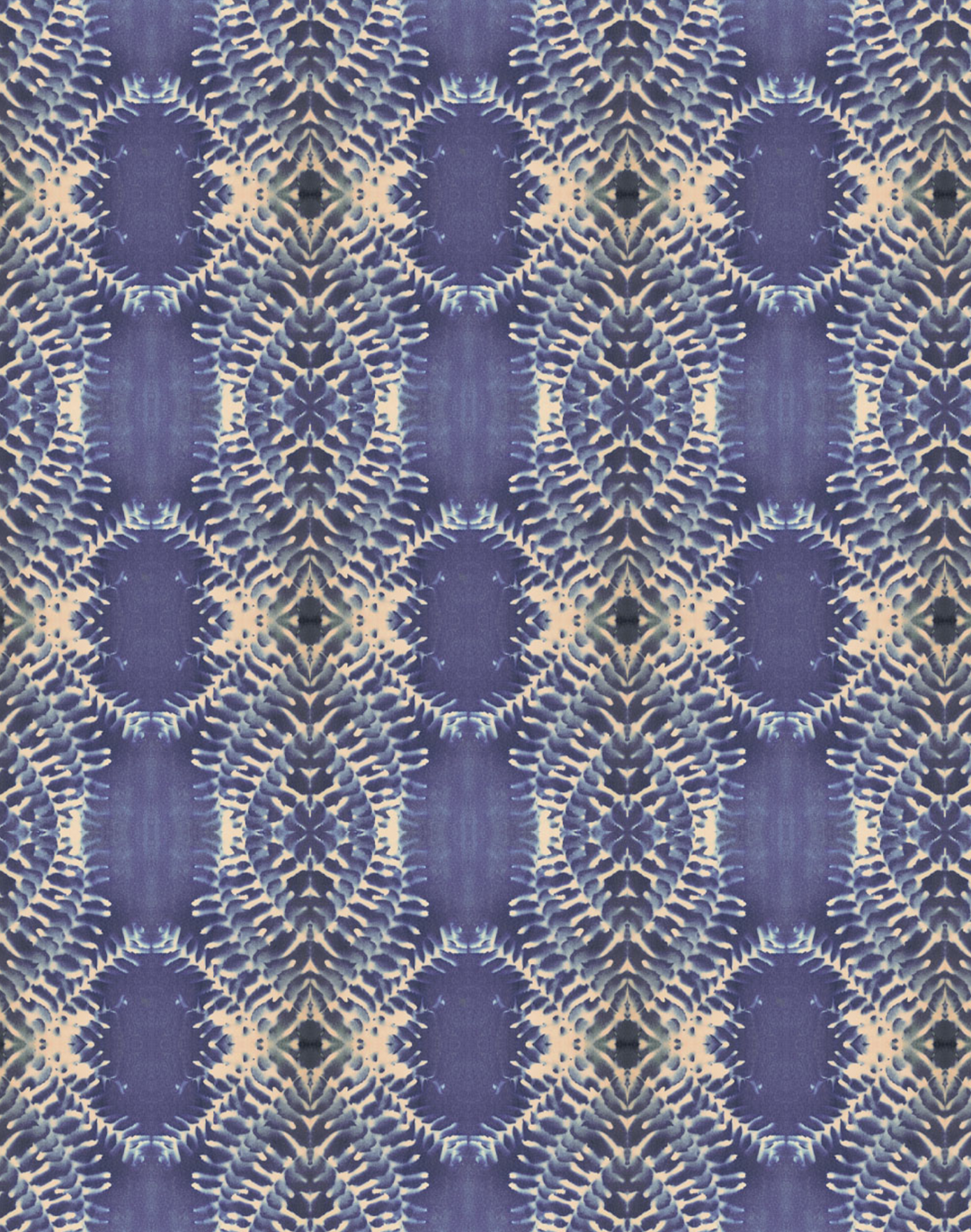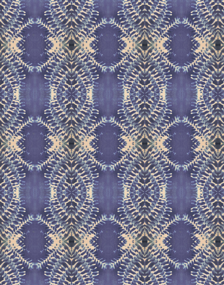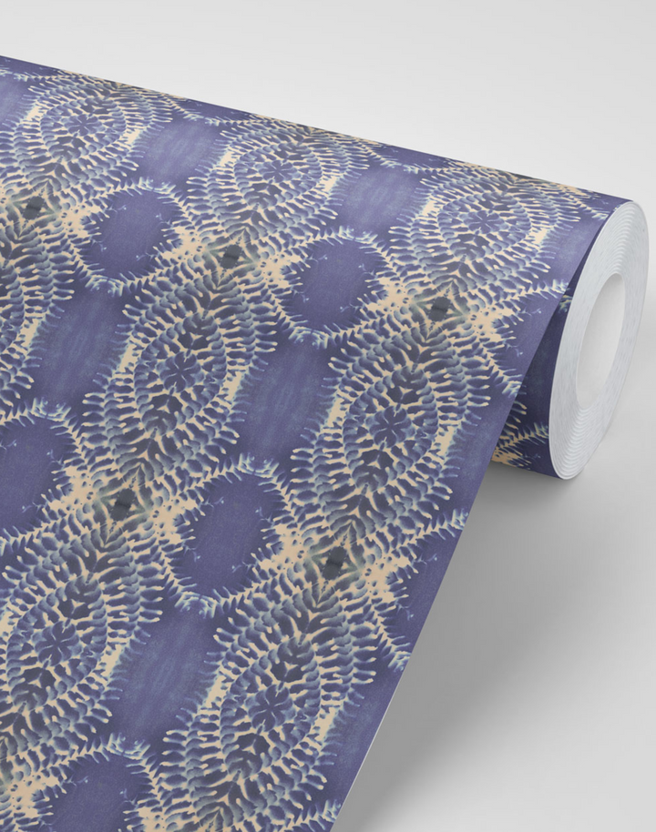 Prepare to be mesmerized by our kaleidoscopic Lumiere design, created using fern fronds and the age-old cyanotype technique. Open to interpretation, the intricate repeat pattern reminds us of a Rorschach ink blot pattern: what do you see?