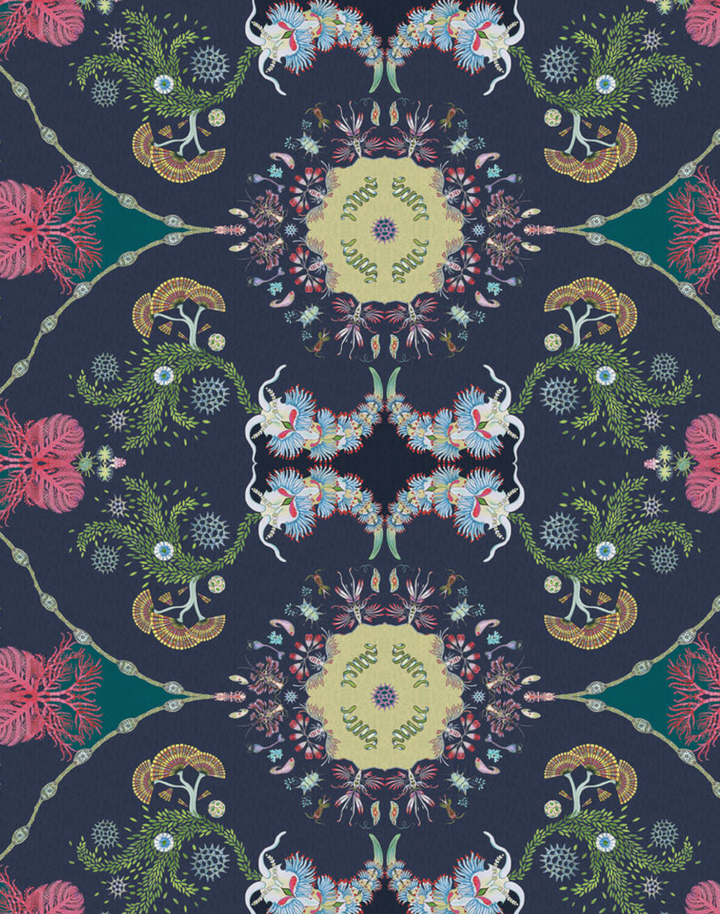 As well as evoking droplets of water as well as using the conventions of the paisley design. It is also reminiscent of stitching and lace, as the fabric of nature is fragile and intricately interwoven and embellished. The colouration is quite free, and can be further expanded upon in the future, as many of these species are really transparent.