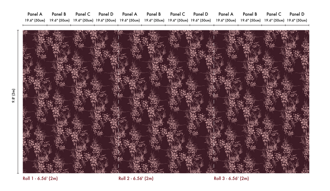 • Each roll contains 4 panels, each 19.6" wide x 118" long