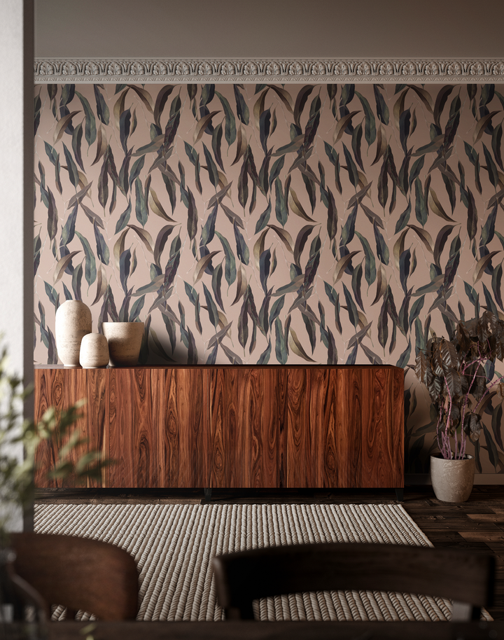 Seasons Awaken is a unique botanical wallpaper soaked in rich hues and sophisticated textural blends. The hand-painted brushstrokes contour its leaves to form an exuberant chimerical pattern. Echoing the surreal light and temperature cycles of nature’s evolving seasons, highlights of mythical muse forge curious texture and tones within each foliole. Available in six surreal color combinations, it’s time to awaken the potential of your home with this imaginative and spirited wallpaper.
