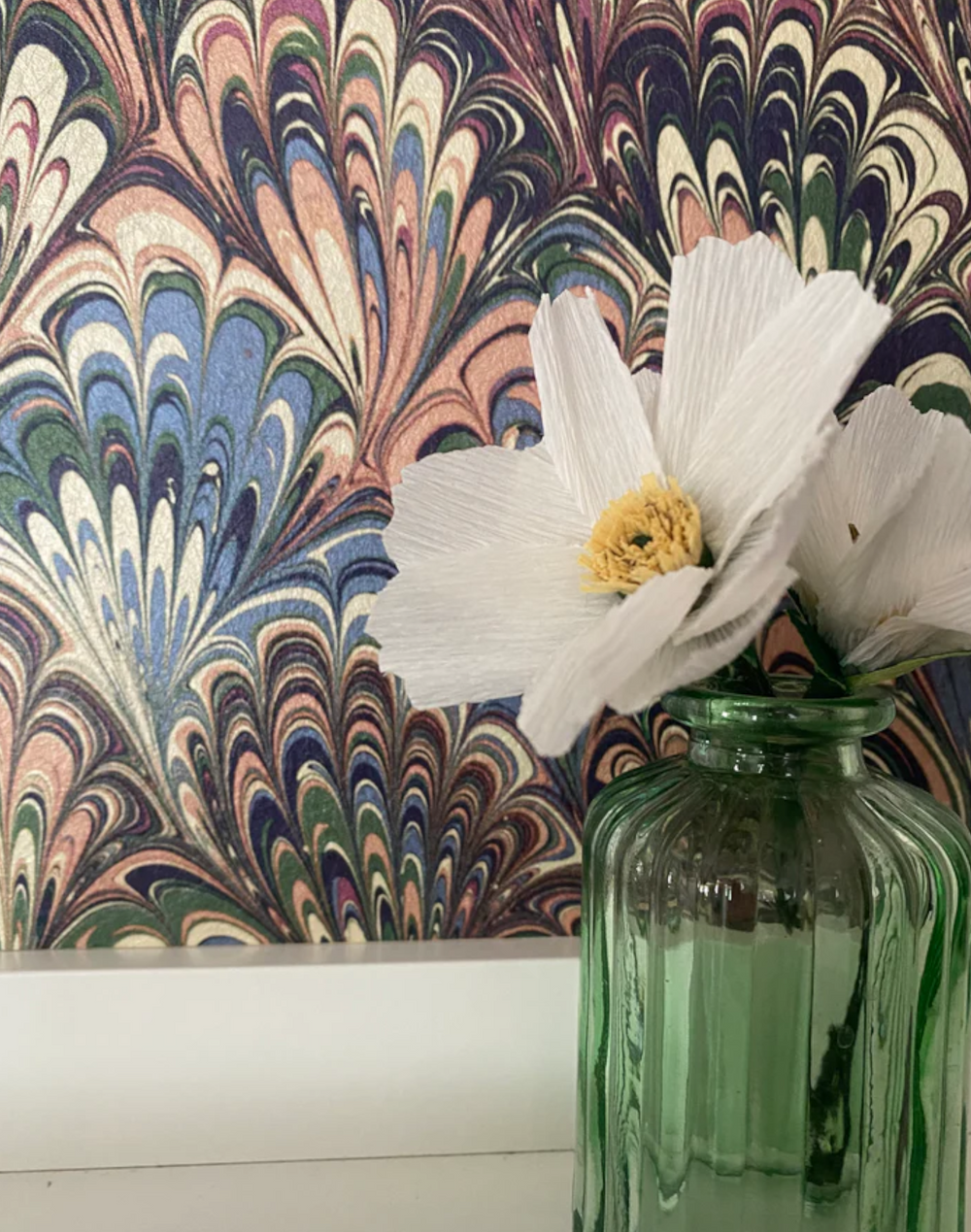 Our Serpentine pattern is based on perhaps one of the most iconic and recognizable marbled designs, most often referred to as ‘Peacock’ or ‘Bouquet. Originally first created at the end of the 19th century we've modernized this pattern by incorporating a rich palette and enlarging the scale.