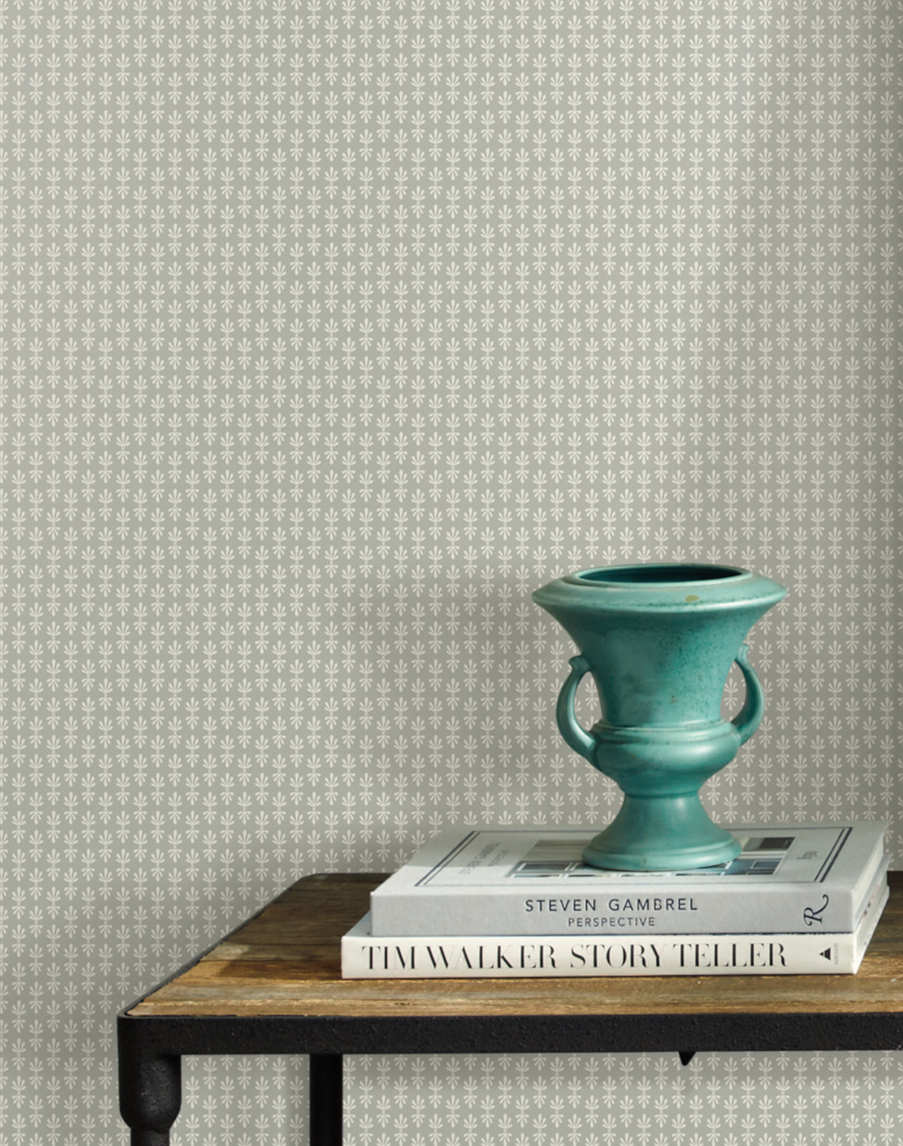 A grid of petal-inspired fleur-de-lis, the Petal print is perfect for rooms that need a subtle accent or as a companion pattern for statement florals. This wallpaper is screen printed and comes in 27 inch rolls with a 25.25 inch repeat.