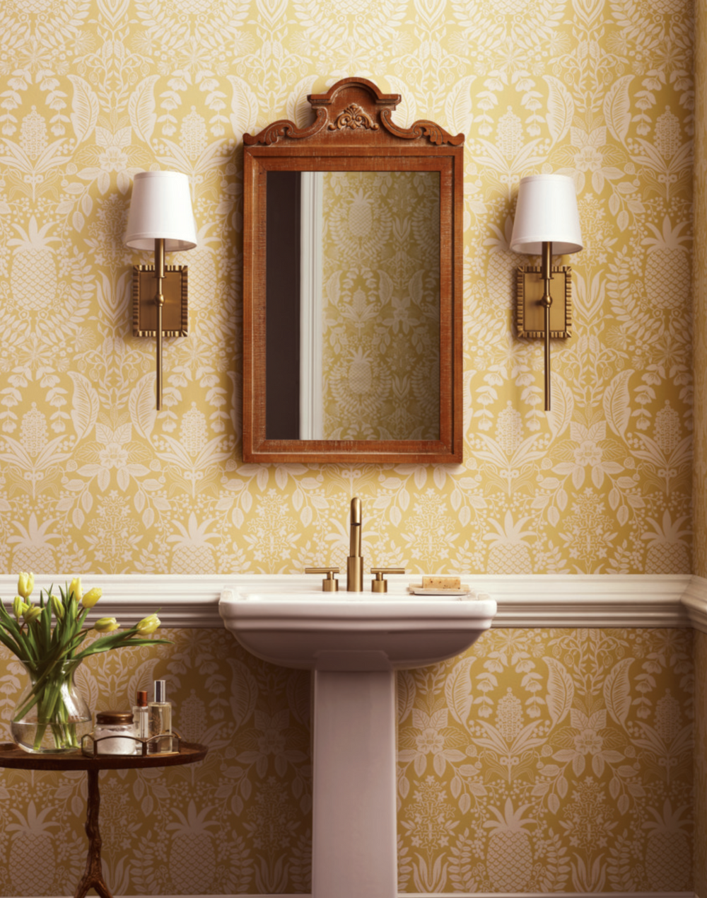 Reminiscent of traditional textile wallcoverings, our Pineapple Damask wallpaper features symmetrical trellises and pineapples, a traditional symbol of hospitality.