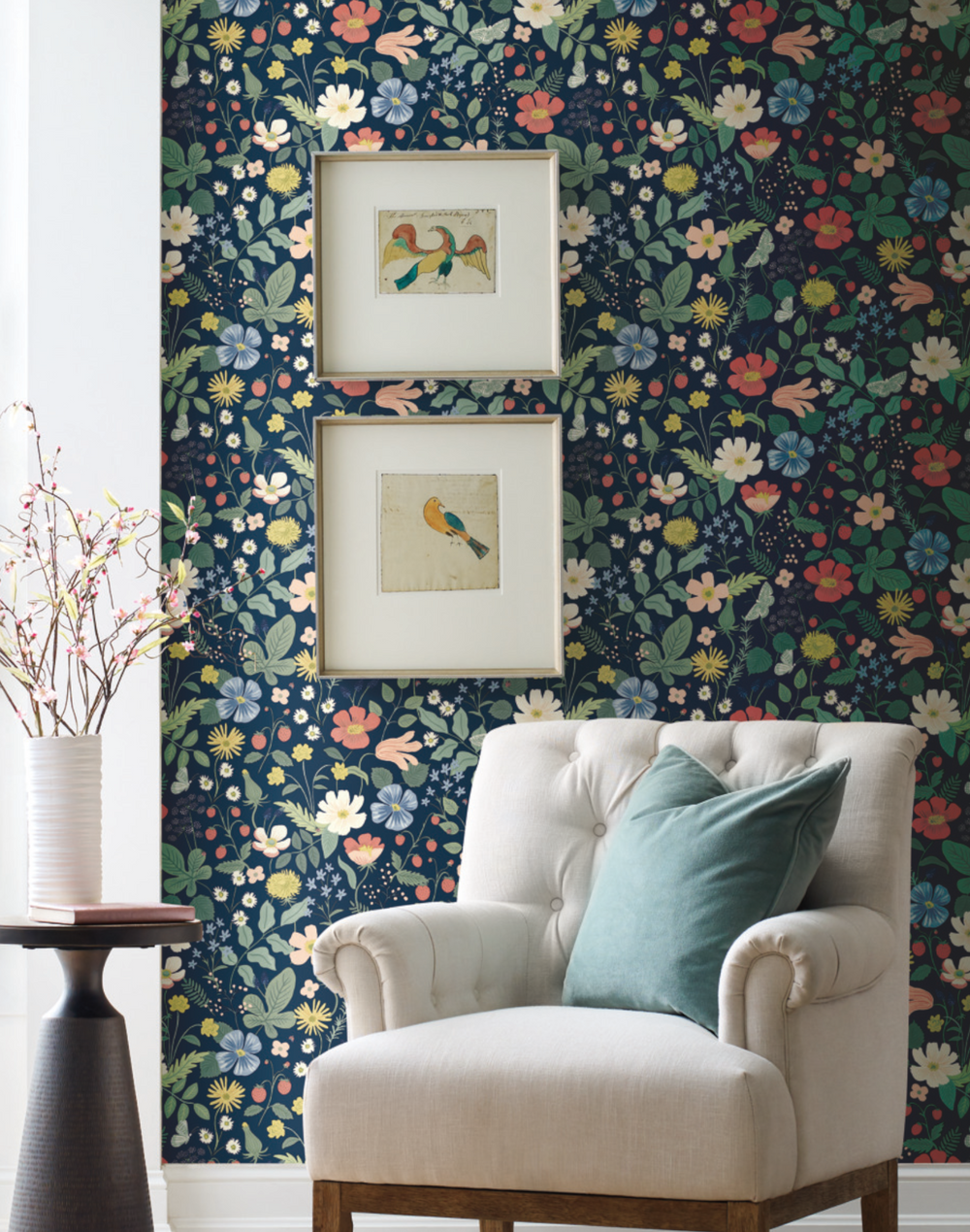 The bright blooms, trailing leaves, and sweet berries of Strawberry Fields create a pattern that will bring cheer to any space, and the occasional fluttering butterfly adds a whimsical accent. This wallpaper is gravure printed and comes in 27 inch rolls with a 24 inch repeat.