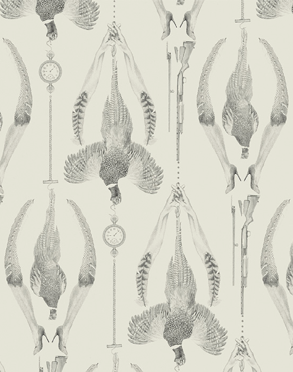 A surreal take on beautiful handing pheasants - hunting with pearls and framed by the most feminine arms and legs.