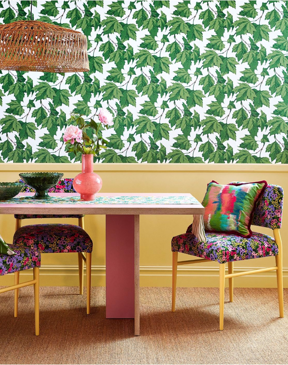 When it comes to collaborations, you can’t get much better than Harlequin X Sophie B. Robinson.  The undisputed ‘queen of color’, Sophie Robinson meets the vibrantly hued Harlequin, in a whimsical and joyfully maximalist range of fabric and wallpaper.