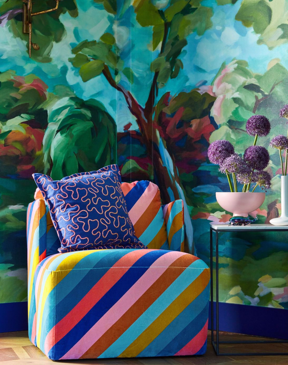 When it comes to collaborations, you can’t get much better than Harlequin X Sophie B. Robinson.  The undisputed ‘queen of color’, Sophie Robinson meets the vibrantly hued Harlequin, in a whimsical and joyfully maximalist range of fabric and wallpaper.