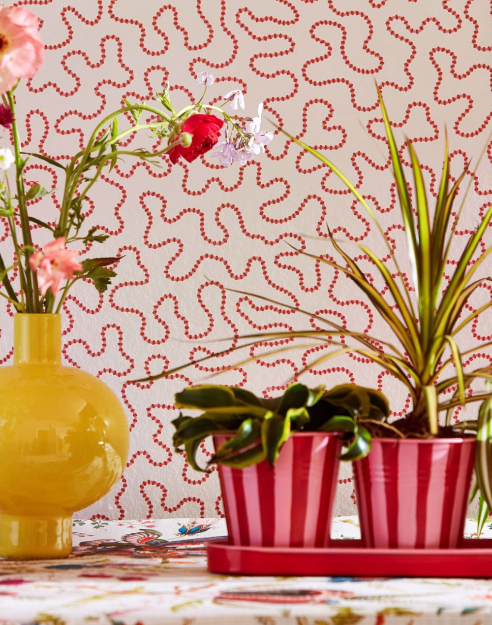 Like the flightpath of a butterfly fluttering delicately around Sophie's country garden, our Wiggle wallpaper is a wonderfully versatile surface printed design that sits beautifully with the entire collection.