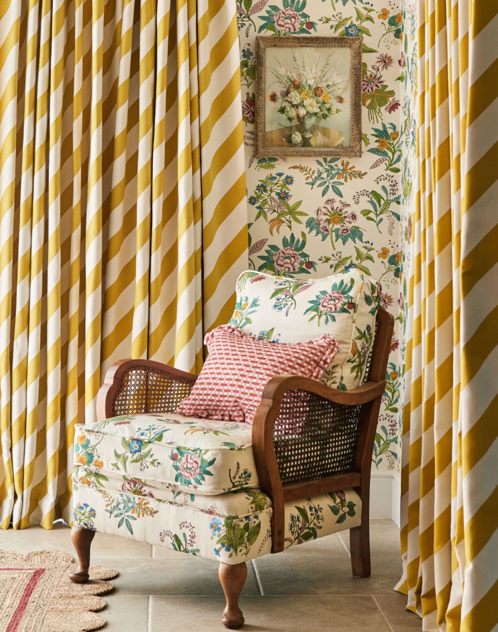 This hand drawn archive design is representative of Sophie's country garden and the woodland that surrounds her home. An illustrative wallpaper of peony, primrose and laburnum allude to time spent outdoors and the ever giving joys of springtime.