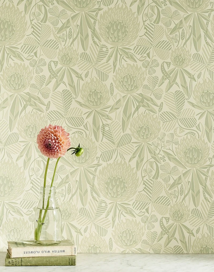'Clover' by Angie Lewin is a two color wallpaper, printed in the UK using water-based inks and paper from sustained forests.