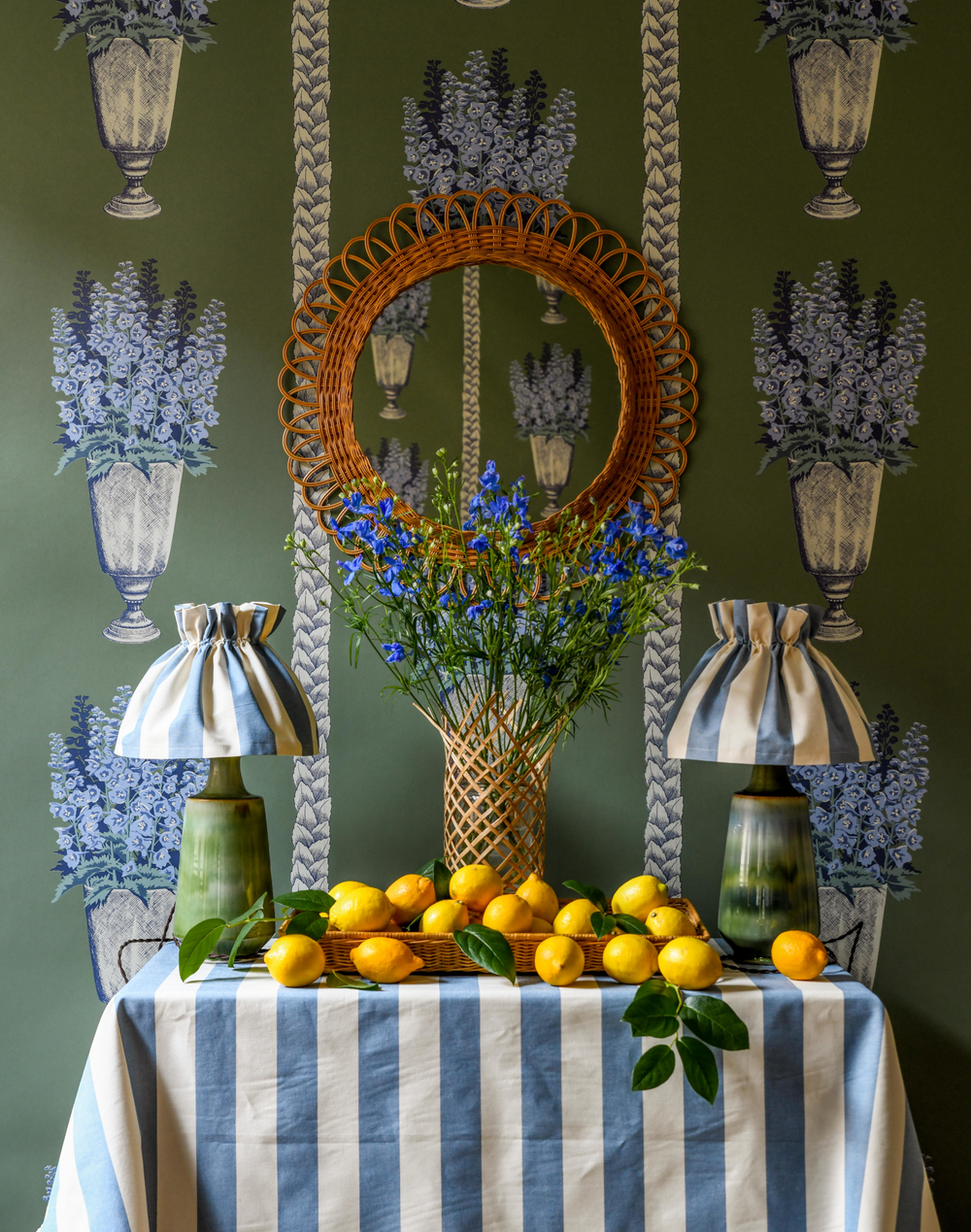 A bunch of Grandma’s magnificent delphiniums arranged in a vase. Grand, eccentric, symmetrical and just plain wonderful. Let your wallpaper flourish!