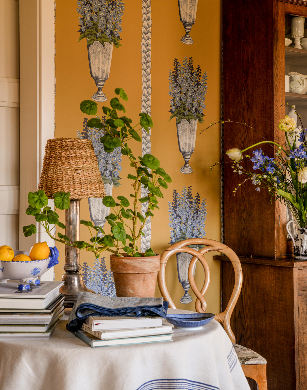 Two of Sweden's most reputable pattern designers, Daniel Långelid and Emma von Brömssen, meet and create wallpapers under a common brand. The differences in their patterns give us powerful and exciting clashes of style. Each and every one of the collection’s patterns are characters on their own and inspires us to unexpected combinations. With its masterful color scheme, the collection unites in a bold timelessness.