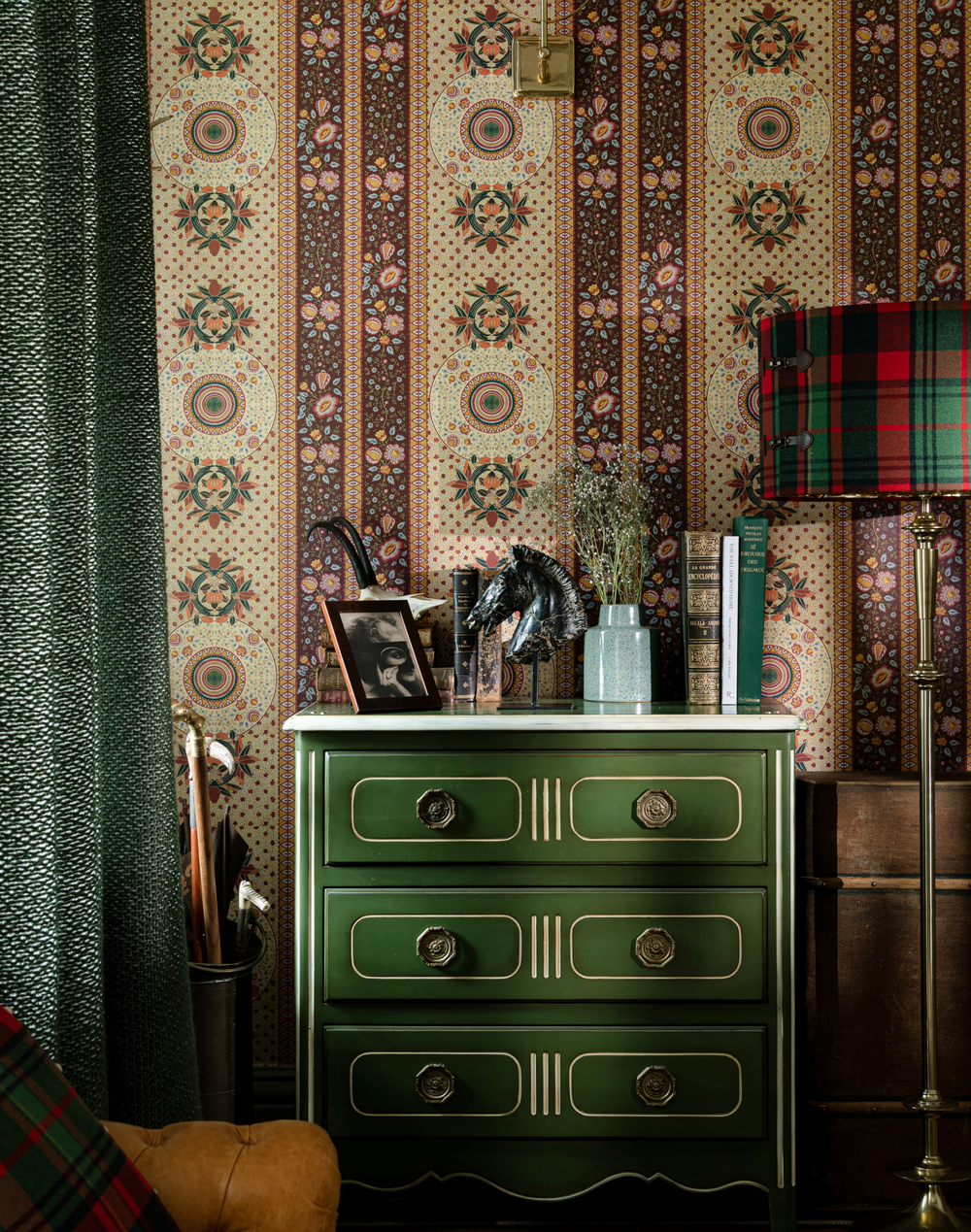 Called ERBSTÜCK, meaning ‘heirloom’ this striped wallpaper is indeed worthy of such a status. Featuring an intricate combination of pretty flowers, stitch-like pattern and delicate leaves arranged in circular motif, it’s a timeless design that encapsulates the essence of the Tyrol.