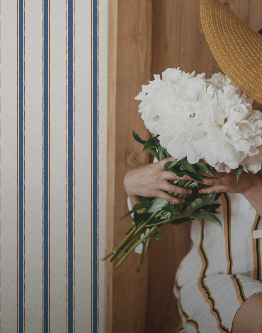 Moulding Line reimagines the classic stripe with strength and softness, drawing inspiration from the steady rhythm of vintage interiors and the fitted lines of traditional millwork. Every color scheme has a connection to a certain location, such as a sunlit hallway, a worn-out armchair by the fireplace, or a painted wall in an old study.