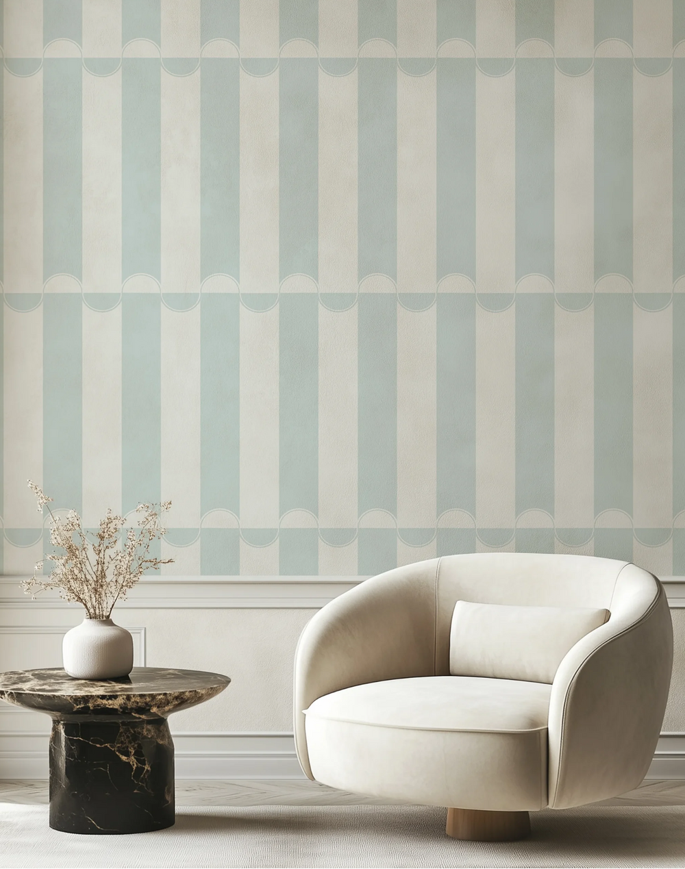 Enhance your interiors with the timeless charm of our Scallop Lane wallpaper collection, a perfect blend of bold patterns and elegant design. Featuring a unique scalloped stripe motif, this versatile wallpaper adds a sophisticated yet playful touch.