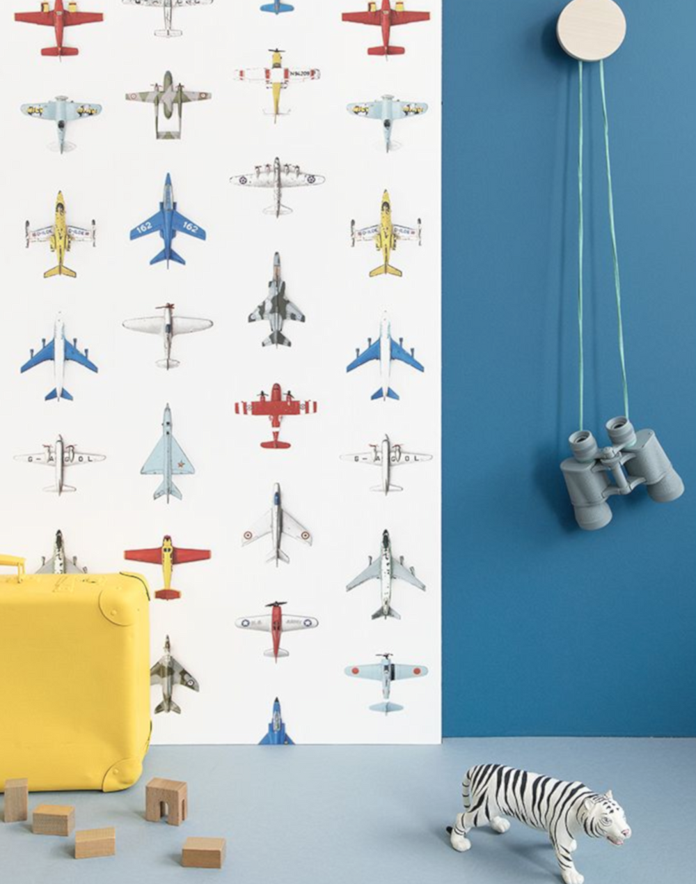 Studio Ditte wallpaper with a sky full of vintage toy airplanes. Cool wallpaper for the room of young adventurers. Your child boards an exciting flight to unknown destinations.